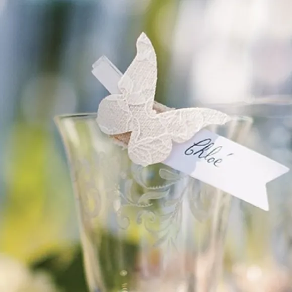 La Pince Marque Place Papillon Jute Dentelle Est Proposée En Lot De 6 A Prix Discount, Elle Mesure Environ 3 Cm