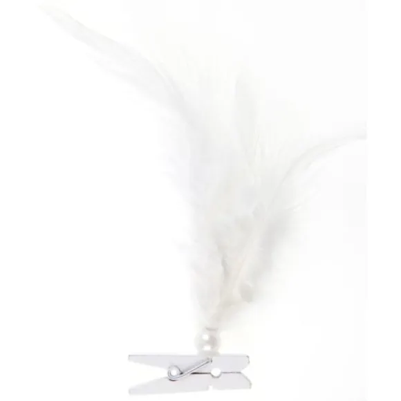 La Plume Sur Pince Blanche Est Vendu En Lot De 6 A Prix Discount ,Sa Dimension Est De 3.5 X 9 Cm