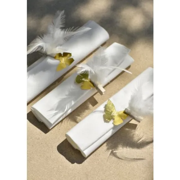 Plume Sur Pince Blanche , Sublime Ce Lot De 6 Pinces Plume Pour Votre Decoration Mariage, Vous Pourrez Les Fixer Sur Vos Accessoires De Table : Serviettes, Marque Place..
