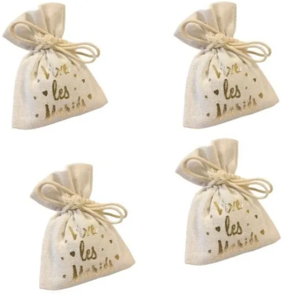 Le Sac A Dragees Coton Vive Les Mariés Or Est Vendue En Sachet De 4 Pièces Avec Une Matière En Coton De Luxe