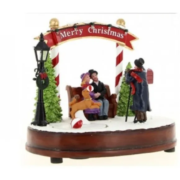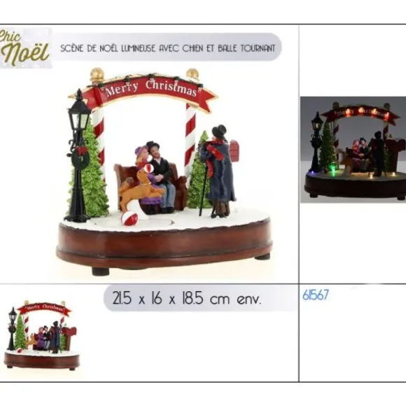 Le Village Scene De Noel Tournant Avec Chien Et Balle Est Vendu A L’Unité A Prix Discount Et Mesure 21 X 16 X 18Cm