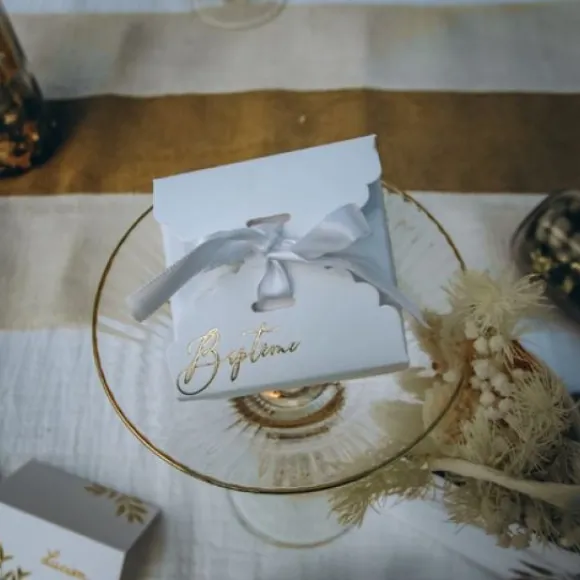 Sublime Ce Lot De 10 Contenants Baptême Or , Des Boites Dragees Sublimes Sur Un Theme Baptême En Or