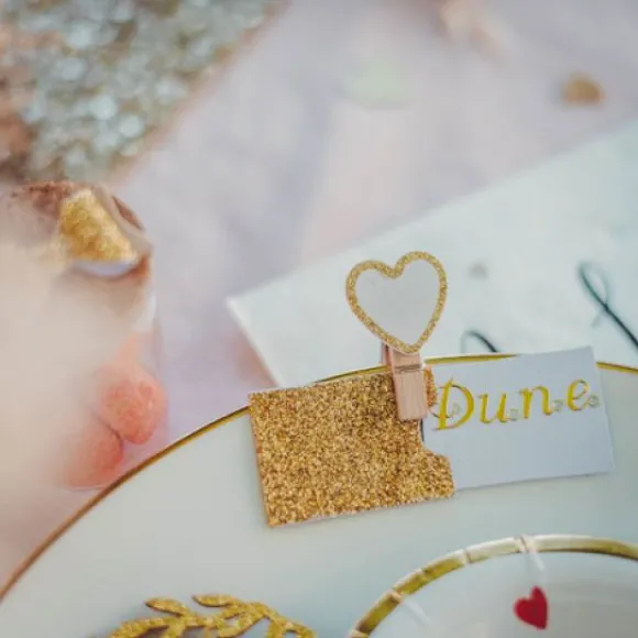 10 Pinces Coeur Blanc Pailleté Or Choisissez Cette Magnifique Pince En Forme De Coeur Pour Vos Tables De Reception, Accrochez Ces Sublimes Pinces Coeur Sur Vos Verres Ou Serviettes