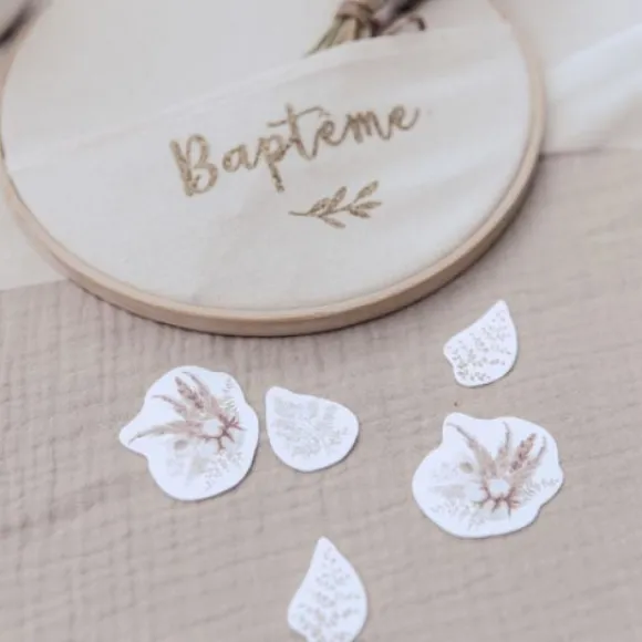 Les Confettis De Table Pampa Fleur De Coton Sont Vendus A Prix Discount , En Lot De 100 Idéal Lors D’Un Theme Baptême