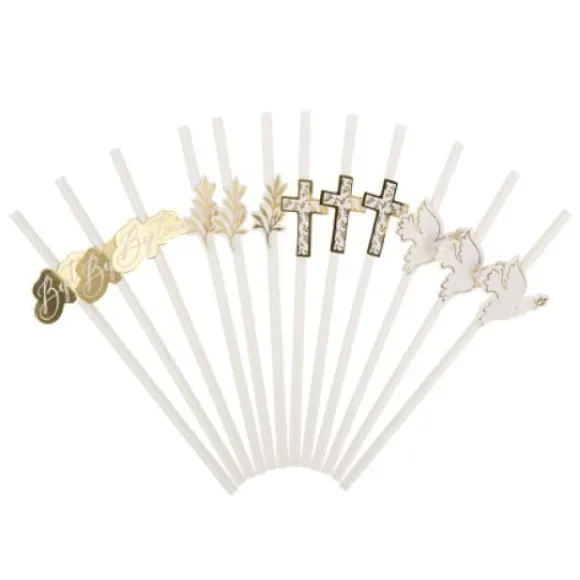 12 Pailles Baptême Jolis Brins , Choisissez Ce Lot De 12 Pailles Incontournables Pour Le Baptême De Vos Bambins
