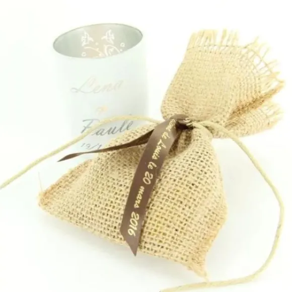 5 Sacs Jute Avec Rubandimensions : Hauteur 13 Cmexiste En Naturel, Chocolat, Écru Ou En Bordeaux .