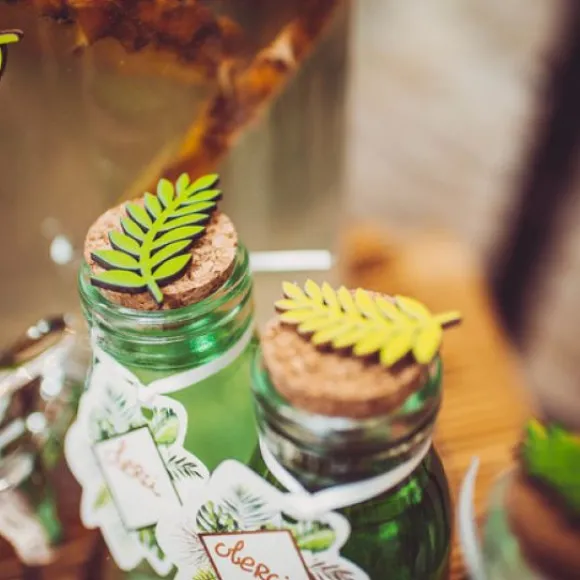 Décorez Vos Buffets Et Tables De Cérémonie Avec Ce Lot De 6 Feuilles De Laurier Bois Degradé, Des Petites Feuilles Vertes Et Or Parfaites Pour Un Theme Tropical Ou Jungle