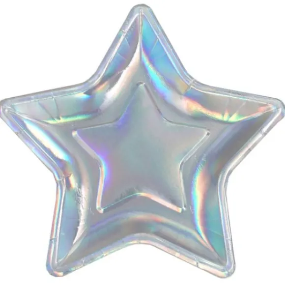 L’ Assiette En Plastique Etoile Blanc Irisé Est Proposée En Lot De 10 A Prix Discount Pour Votre Mariage, Anniversaire Ou Baptême