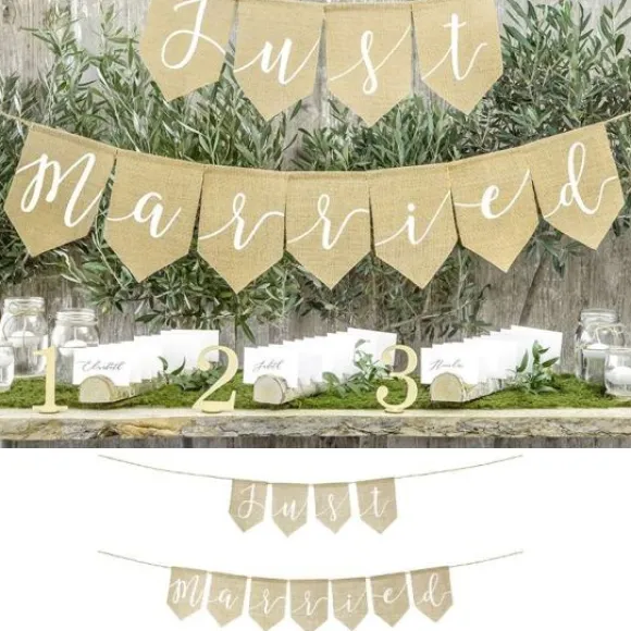 Vous Pourrez Facilement Accorder La Banniere Just Married En Jute A Tout Notre Choix De Decoration Mariage Sur Le Theme Naturel Jute
