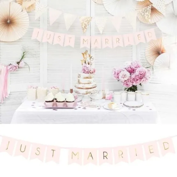 Profitez De La Banniere Just Married Rose Claire, Une Guirlande Sur Le Theme Just Married Dans Les Tons Rose Clairs A Suspendre Dans Votre Salle De Cérémonie