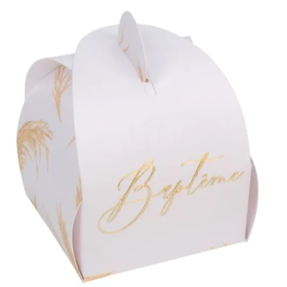 Optez Pour Ce Lot De 10 Boites A Dragees Baptême Des Boites A Dragees Avec Un Grain De Papier Texturé, Des Vegetaux Verts Et Or Avec Une Typographie Vraiment Canon Pour Votre Baptême
