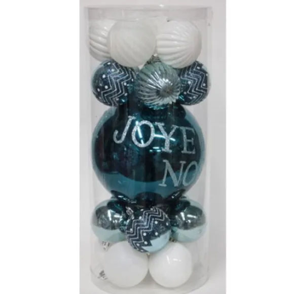 Boule De Noel Turquoise Et Blanc Joyeux Noel , Optez Pour Ce Lot De 20 Boules De Noel Turquoise Et Blanc 6Cm Avec Leur Grosse Boule De Noel Joyeux Noel Turquoise De 15Cm