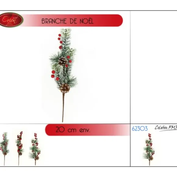 La Branche De Noel Cerisier Avec Pomme De Pin Est Vendue A L’Unité A Prix Discount Et Mesure 20Cm