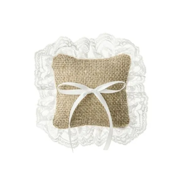 Coussin Porte Alliance En Jute Avec Dentelle Blanche, Choisissez Ce Coussin D’Alliance Mariage Sublime Pour Un Theme Boheme, Nature
