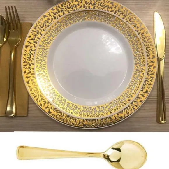 Pensez À Accordez Les Cuillères À Café En Plastique Or À Notre Large Choix De Vaisselle Jetable En Or : Fourchette , Couteau Jetable Argent, Grande Cuillère, Verre Ou Encore Flûte À Champagne
