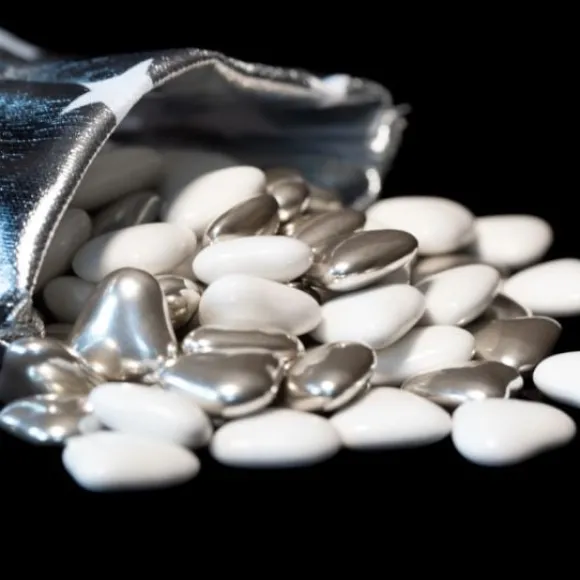 Les Dragées Coeur Chocolat Assorti Blanc Et Argent Sont De Fabrication Française Et Sont Composés De Chocolat : 70% De Cacao Moulé Et Enrobés D’Une Très Riche Palette De Sucres Colorés.