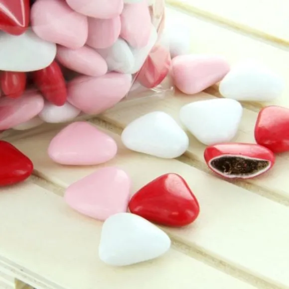 Splendide Les Dragées Coeur Chocolat Assorti Rouge Rose Et Blanc , Des Dragees En Forme De Coeur Assorti Dans Les Rouge Rose Et Blanc Idéal Pour Un Theme Saint Valentin Ou Un Mariage Par Exemple