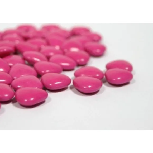 Les Dragées Coeur Fuchsia Sont De Fabrication Française Et Sont Composés De Chocolat : 70% De Cacao Moulé Et Enrobés D’Une Très Riche Palette De Sucres Colorés.