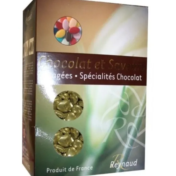 Ces Dragées Coeur Or Au Chocolat Sont Vendus Dans Une Boite Luxueuse En Conditionnement De 500 Gr