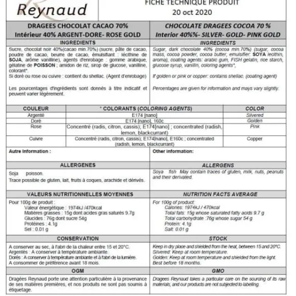 Les Dragées Coeur Or Sont De Fabrication Française Et Sont Composés De Chocolat : 70% De Cacao Moulé Et Enrobés D’Une Très Riche Palette De Sucres Colorés.
