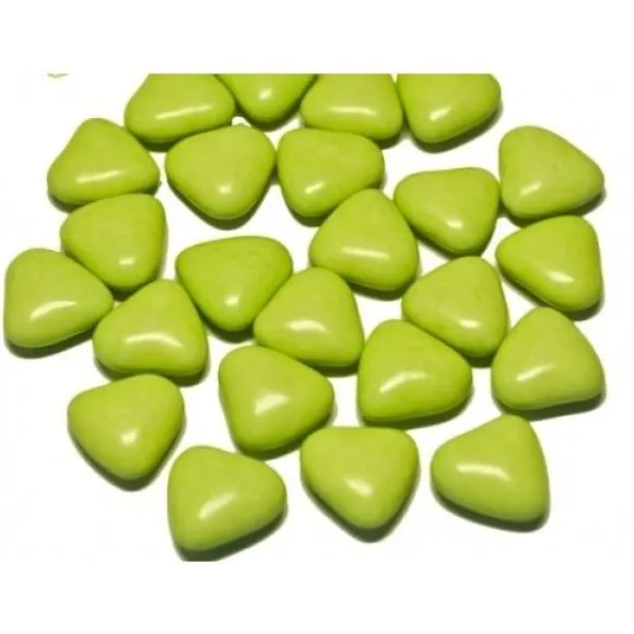 Les Dragées Coeur Vert Anis En Forme De Coeur Sont Au Chocolat 70% De Cacao Moulé Et Enrobés D’Une Très Riche Palette De Sucres Colorés.