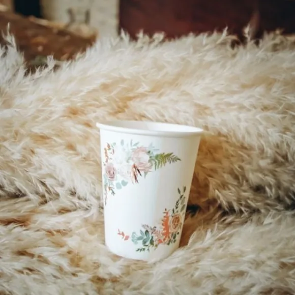 Un Lot De 8 Gobelet Carton Imprimé Sur Un Theme Vegetal Qui Agrémenteront Votre Décoration De Table