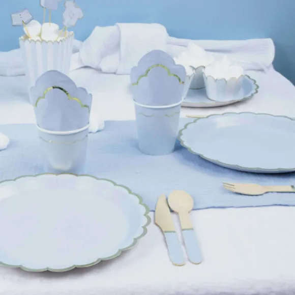 Les Gobelet Festonnés 200 Ml Bleu Pastel Et Or X 8 Pièces Pas Cher, Coup De Coeur Sur Cette Vaiselle Jetable En Carton