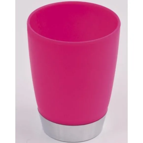 Un Gobelet Bicolore Fuchsia/Chrome En Pvc Pour Donner Du Pep’S À Votre Salle De Bain.Dimensions : H : 11Cm,Ø :7.5 Cm