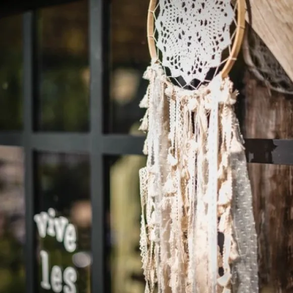 Le Grand Attrape Reve Dentelle Ivoire Pourra Être Suspendu Dans Votre Salle De Mariage Avec Des Mini Pinces A Linge , En Décoration De Chaise, En Plan De Table Ou Encore Pour Votre Déco De Table