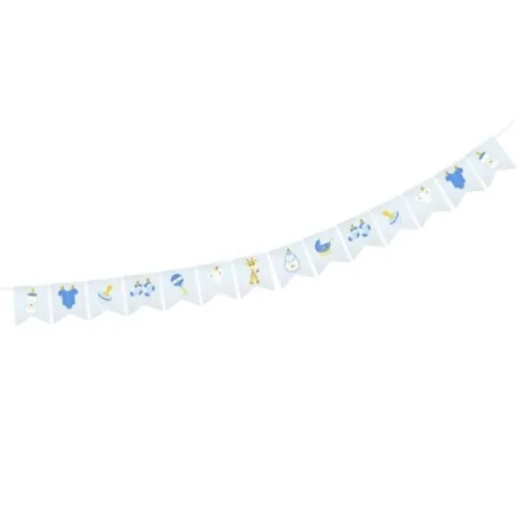 La Guirlande 14 Fanions Baby Shower Bleu Ciel Comprend 14 Fanions Sur 5 Mètres De Long