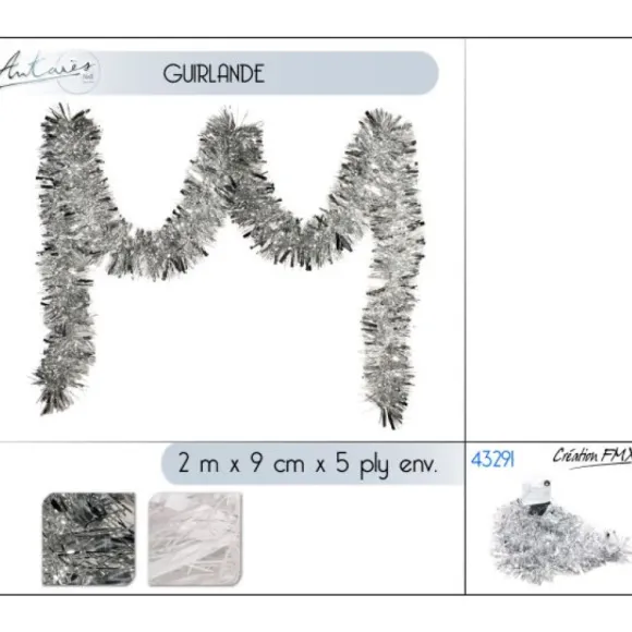 La Guirlande De Sapin De Noel Blanc Argent Est Proposée A L’Unité A Prix Discount Avec 2 Couleurs Aux Choix, Elle Comprend 5 Plis Sur Une Longueur De 2 Mètres Avec Une Largeur De 9Cm
