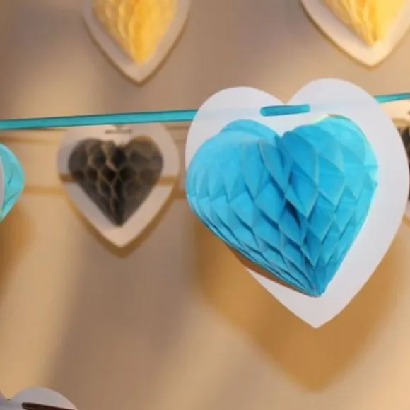 La Guirlande Géante Bleu Ciel 10 Coeurs Alvéolés Est Proposé A L’Unité A Prix Discount, Elle Mesure 4 Mètres Et Comprend 10 Coeurs Alvéolé Couleur Bleu Ciel
