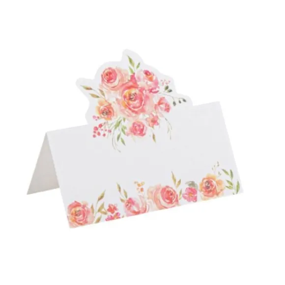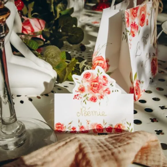 Marque Place Romantique, Choisissez Ce Lot De 10 Marque Places Sur Le Theme Romantique, Avec Ses Fleurs En Aquarelle , Du Doré Et Un Joli Papier