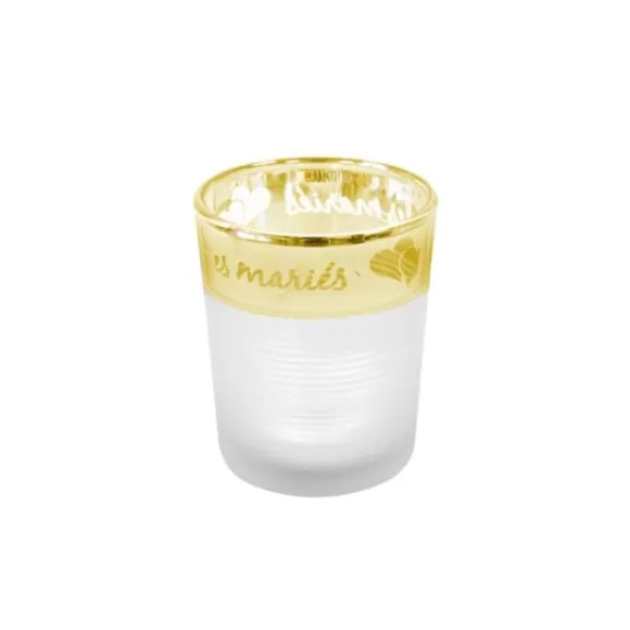 Le Photophore Mariage Vive Les Mariés Or Est Proposé A L’Unité A Prix Discount, Il Mesure 5.5 Cm De Diamètre Sur 6.7Cm De Hauteur