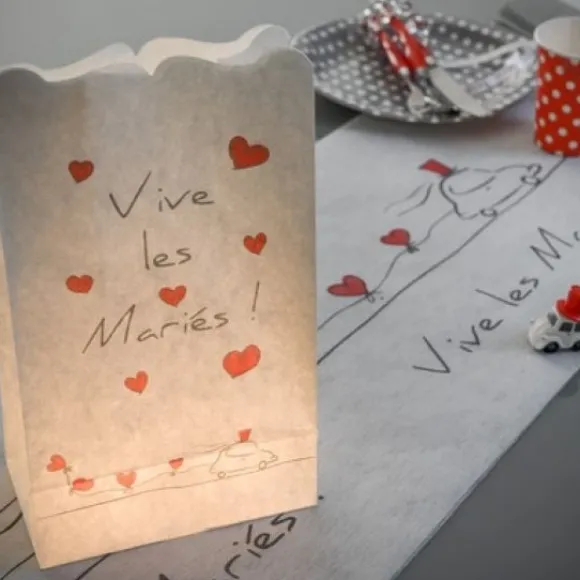 Le Photophore Vive Les Mariés Est Vendu Par Sachet De 6 Pièces À Prix Discount, Graçe À Sa Matière En Papier Ignifugé Vous Pourrez Sans Risque Y Placer Nos Bougies Chauffe Plats Traditionnelles Ou A Led