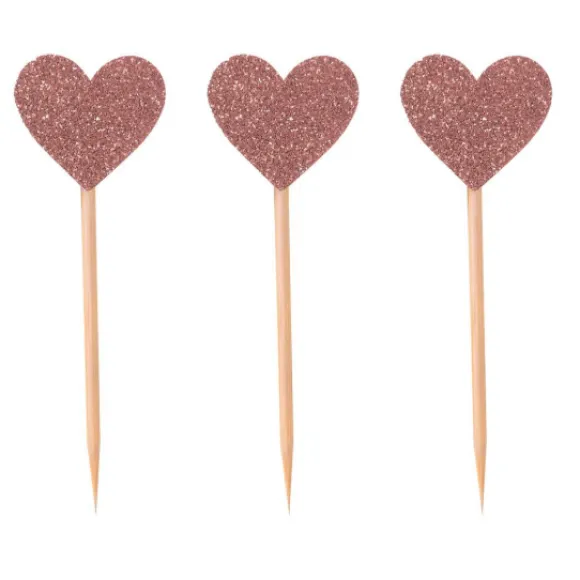 Le Lot De 12 Pique Cœur Rose Gold 7.5Cm Pas Cher, Coup De Coeur Sur Ces Décorations
