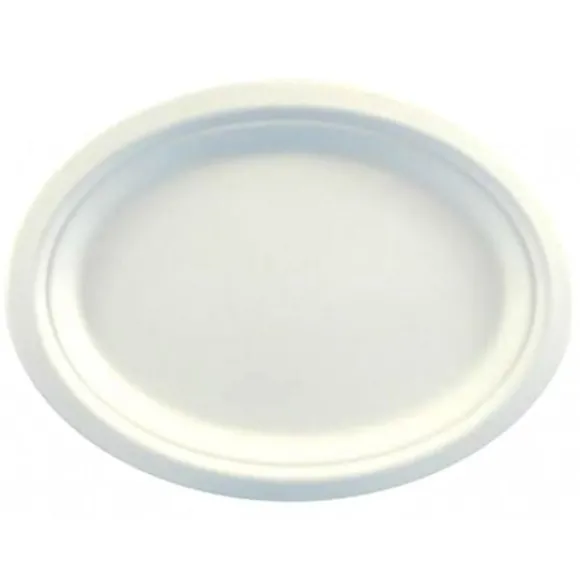 Le Plateau Ovale Blanc En Fibre De Canne A Sucre Est Vendu En Lot De 10 A Prix Discount Et Mesure 26 X 13 Cm