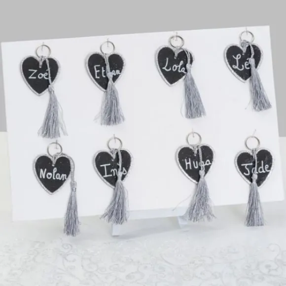 Porte Clé Ardoise Coeur Argent X 6 Pièces : Choisissez Ce Lot De 6 Porte Clés En Ardoise Comme Marque Place Ou Comme Cadeaux Pour Vos Invités