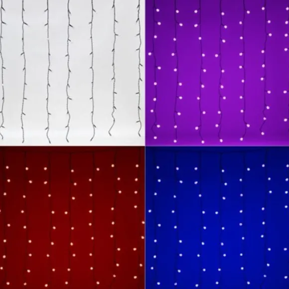 Choisissez Ce Rideau Lumineux Extérieur 100 Led Avec Ses Petites Boules Lumineuses Qui Changent De Couleurs : Violet, Rouge, Bleu Et Fuchsia