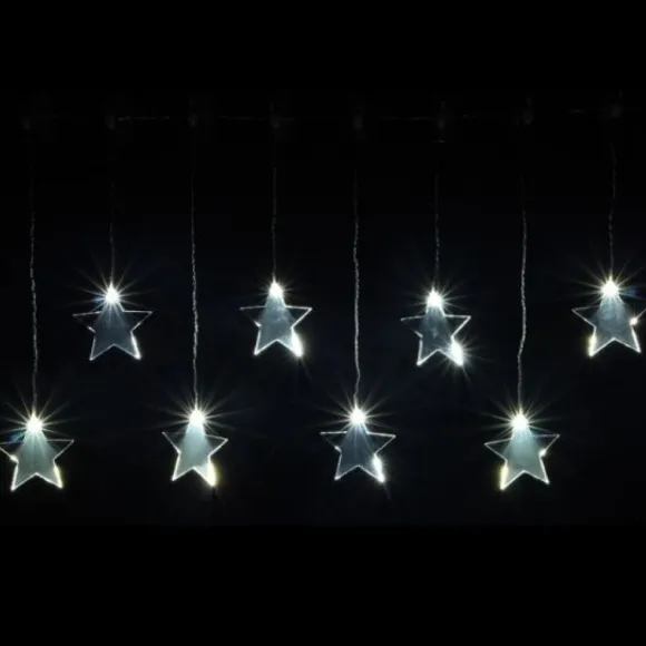 Ce Rideau Lumineux Noel 8 Tombées Motif Étoile Est Proposé À L’Unité À Prix Discount, Il Est Clignotant, Et Mesure 84Cm De Large Et 58Cm De Hauteur