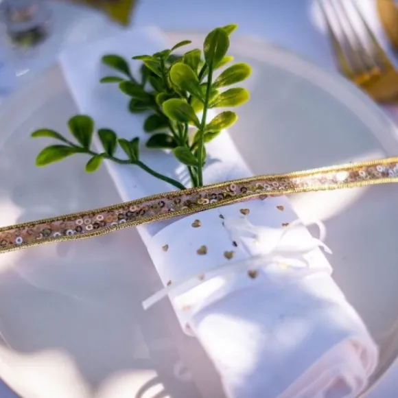 Le Rond De Serviette Blanc Avec Petits Coeurs Or Est Vendu En Lot De 10 A Prix Discount , Vous Pourrez L’ Accorder A Notre Large Choix De Decoration Mariage Sur Le Theme Petits Coeurs