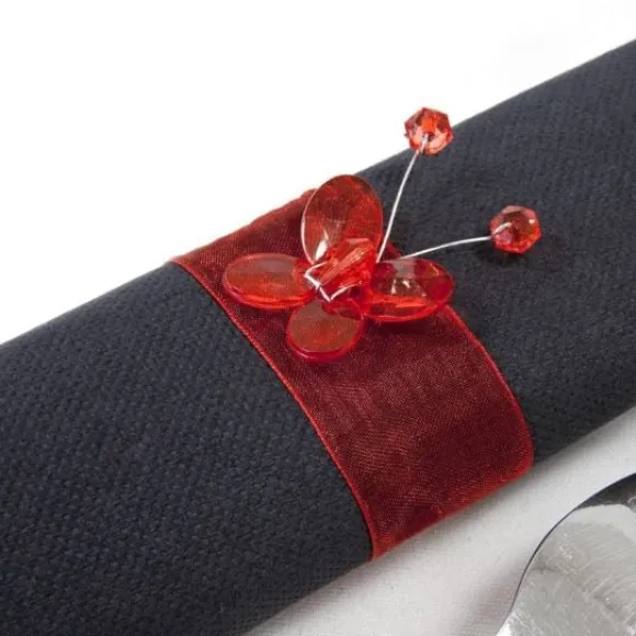 Rond De Serviette Mariage Papillon Rouge : Voici Un Sachet De 6 Ronds De Serviettes En Organza Couleur Rouge Incontournables Pour Vos Serviettes De Table