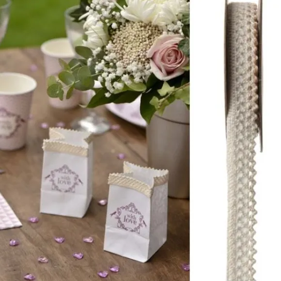 Ce Ruban Dentelle Autocollant Ivoire Pourra Être Posé Sur Vos Tables De Fête, Ou Bien Autour De Vos Contenants Dragees Comme Accessoire De Décoration Mariage