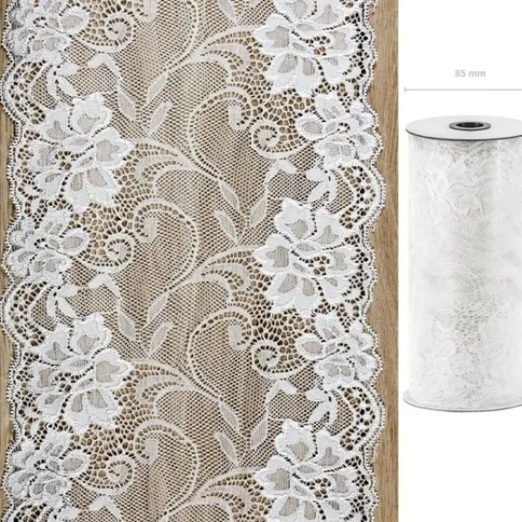 Le Ruban En Dentelle Blanc Pas Cher Est Proposé En Rouleau De 9 Mètres De Long Et 18Cm De Large A Prix Discount , Il Pourra Aussi Être Utilisé Pour Suspendre Vos Nombreux Accessoires De Mariage