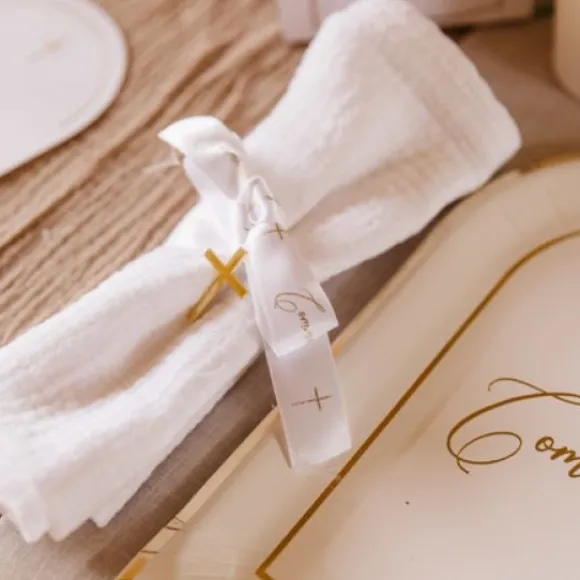 Magniigique Le Ruban Satin Communion Croix Blanc Et Or Sera Idéal Pour Agrémentez Vos Livrets De Messe, Etiquettes, Ronds De Serviette
