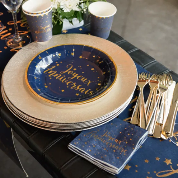 Serviettes En Papier Joyeux Anniversaire Bleu Marine