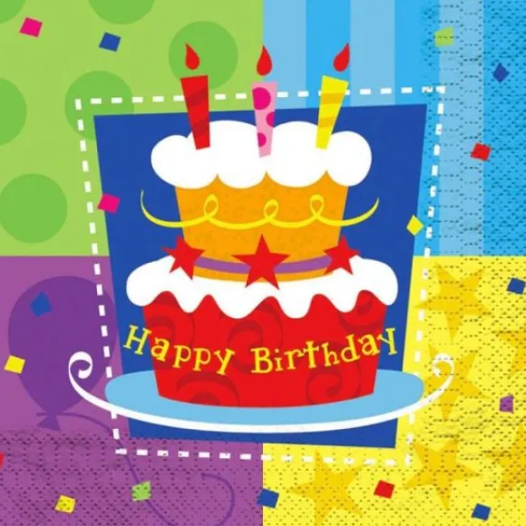 Choisissez Les Serviettes Happy Birthday Gâteau X12Pcs Idéal Pour Vos Carnaval, Anniversaire