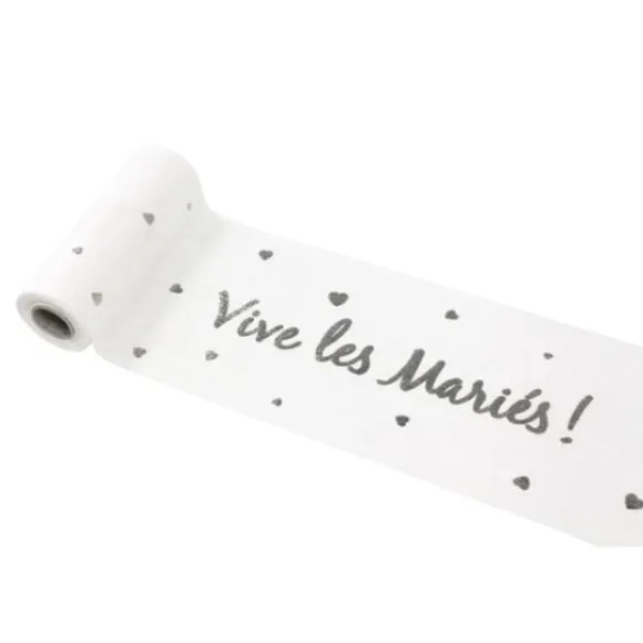 Le Sur Chemin De Table Vive Les Mariés Argent Est Vendu A L’Unité A Prix Discount, Avec Une Longueur De 4 Mètres Et Une Largeur De 14Cm