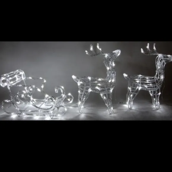 Le Traineau Lumineux De Noel Est Vendu A L’Unité A Prix Discount Avec Les 2 Rennes, Ils Comprennent 160 Led Blanc Froid Ultra Puissantes