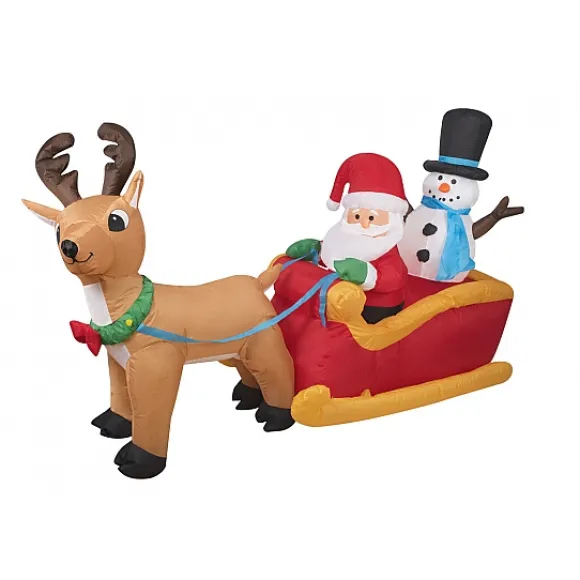 Traineau Du Père Noël Gonflable 1,45 M. Père Noël Dans Traîneau Avec Renne Gonflable Géant, Il Possède Un Gonfleur Intégré Pour Vous Permettre De Gonfler Facilement Votre Décoration De Noël.